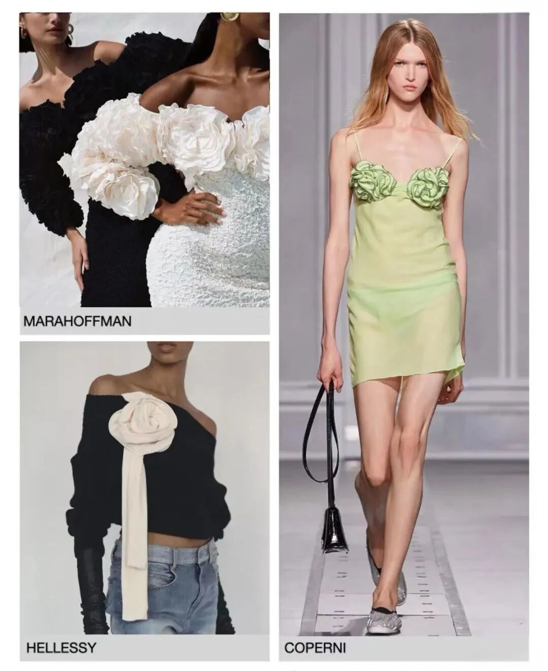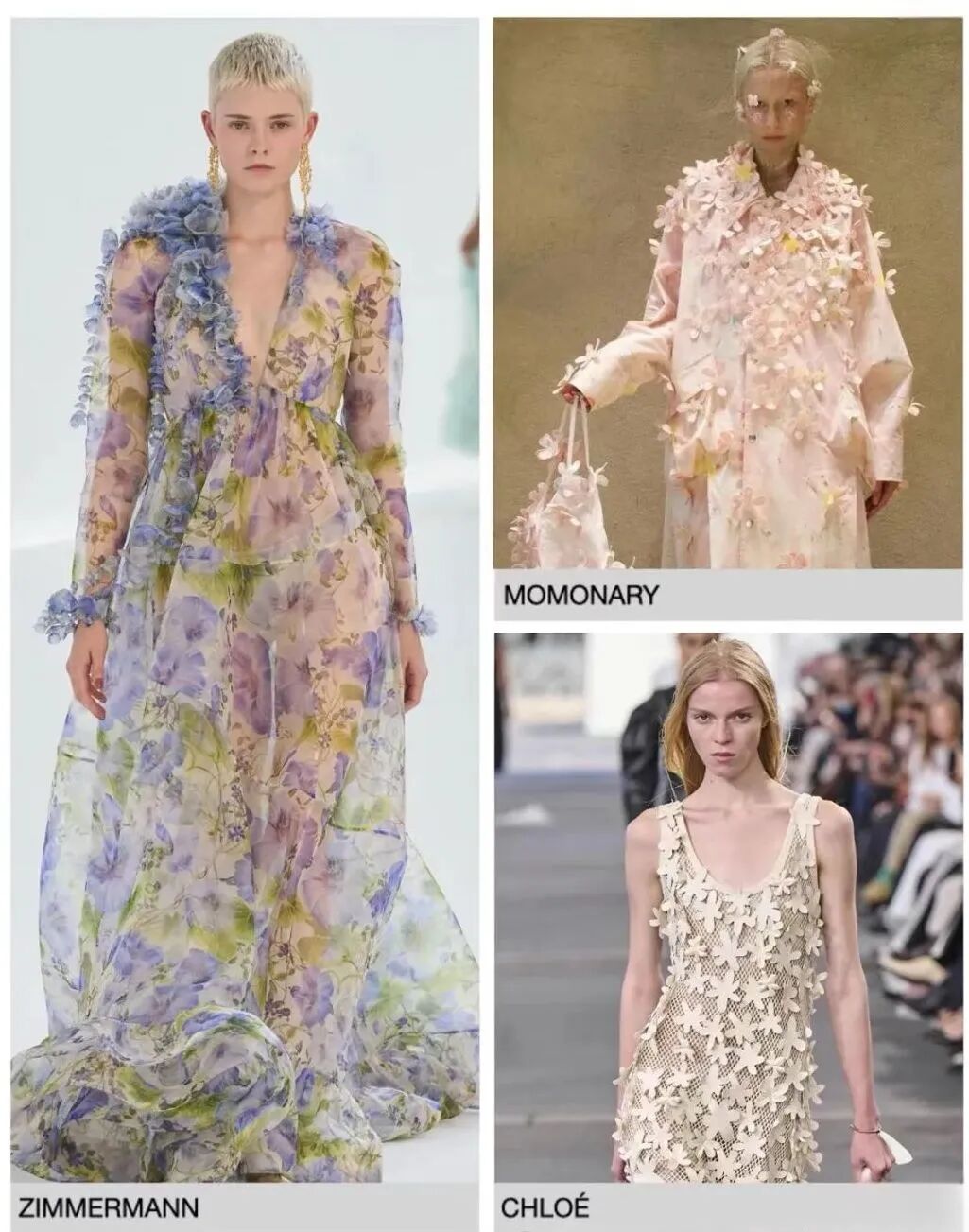 立体花卉点缀仍然是柔美女性市场连衣裙与衬衫的关键驱动力,与布艺花卉不同的是,该趋势以缩小尺寸、碎花或乱花的形式呈现精美肌理感。