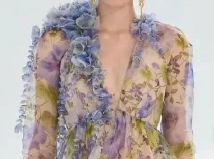 大尺寸繁美醒目的花卉,以具有手工质感和夺目效果的同色花卉更新立体装饰细节,将柔美的女性气质推向了更为夸张的氛围。