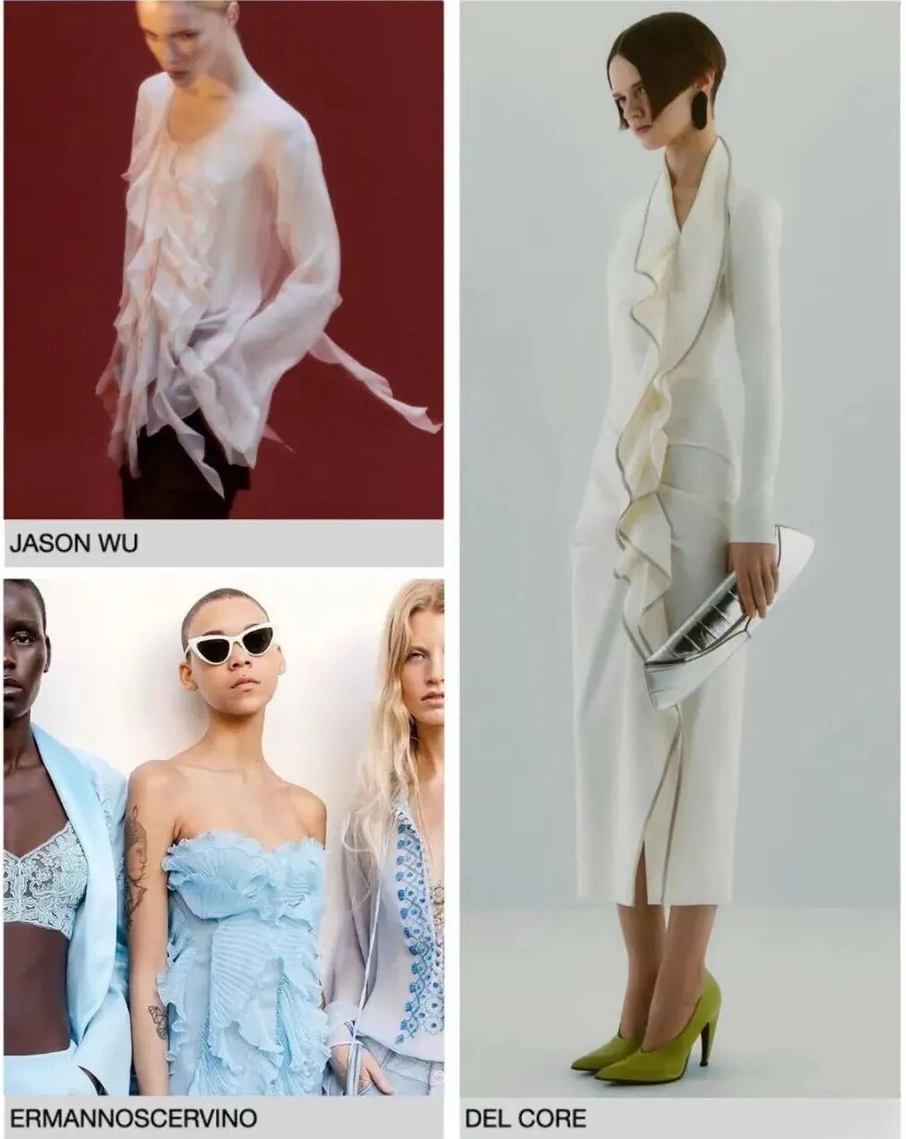 浪漫柔美女性气质设计大肆流行,使得灵动飘逸的荷叶边美学继续发展。