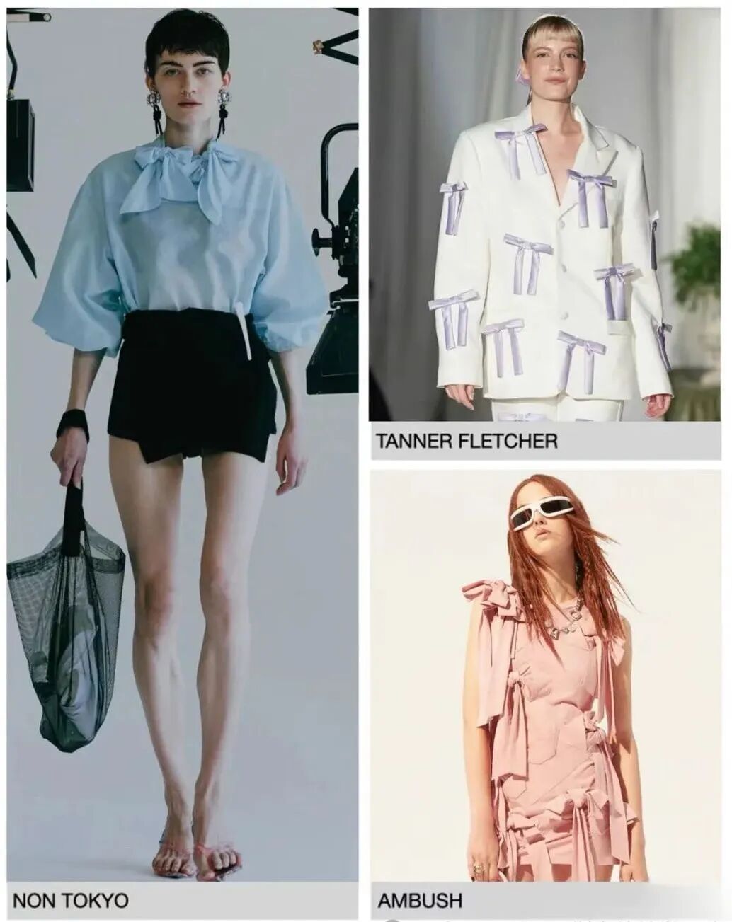蝴蝶结作为装饰元素在每季都很流行,本季的装饰呈现明显夸张感与戏剧性,以夺目吸睛的视觉效果呈现。