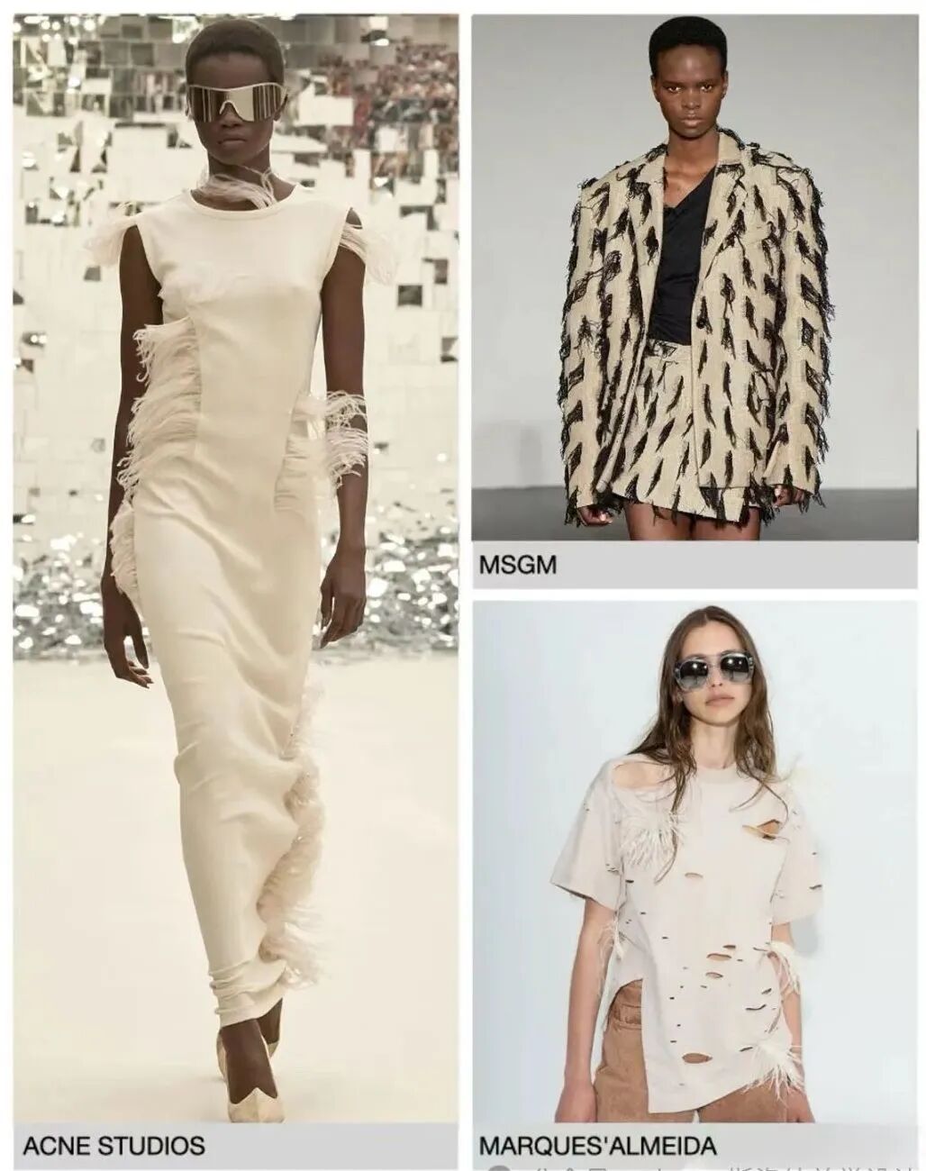 灵动羽毛满足了消费者对夏日仙气飘逸产品的渴望,为2025春夏注入柔美气质,推动了极致女性化风格的回归。